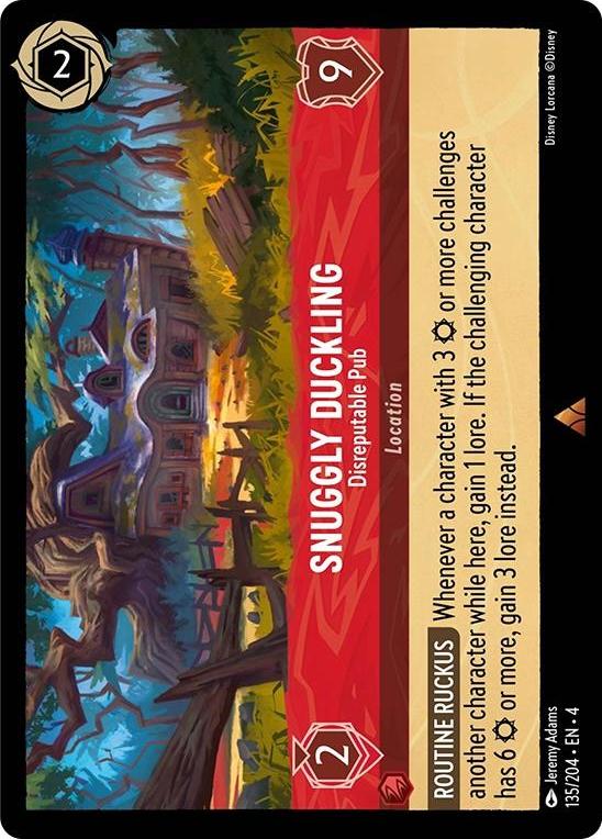 | Abilities and Effects: | [Routine Ruckus] Whenever a character with 3 Strength or more challenges another character while here, gain 1 lore. If the challenging character has 6 Strength or more, gain 3 lore instead. |